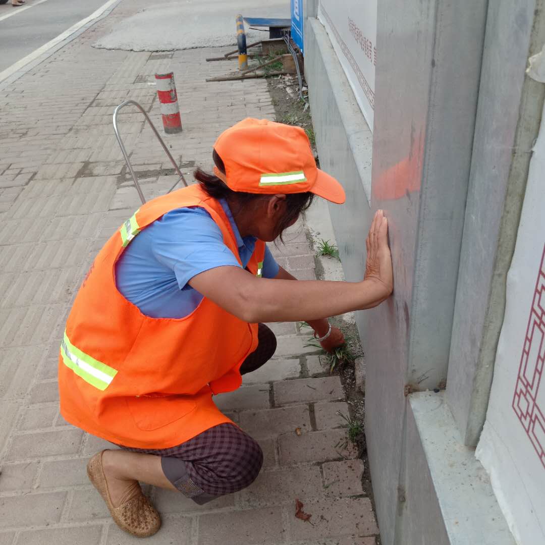 建筑物、構(gòu)筑物及公共設(shè)施出現(xiàn)的所有亂張貼、亂涂寫、亂刻畫、亂噴印進(jìn)行清理保潔。具體作業(yè)對(duì)象涉及主干道、人行隧道、高架路(橋)和道路兩側(cè)3米以下建筑物立面以及廢物桶、路燈柱、大型電話亭、報(bào)刊亭、電線桿、公園圍欄、紅綠燈(電子眼)、環(huán)衛(wèi)工具房、交通防護(hù)欄、交通指示牌、景觀(路)燈、垃圾箱、人行天橋(含橋墩)、人行道防護(hù)欄、圍墻、消防栓、休息(椅)石凳、宣傳欄、沿江防護(hù)欄、沿路圍墻、郵筒等各類公共設(shè)施設(shè)施。