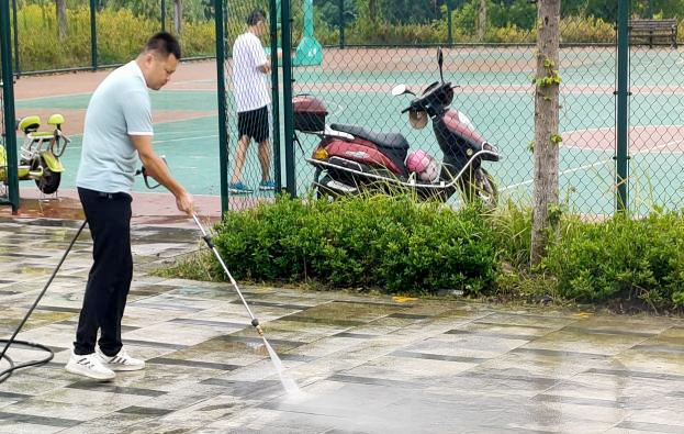 項目經理羅燕妮和副經理歐明星,每天帶領團隊對項目所轄區域進行徹底整理整治,對街道、人行道的衛生死角,暴露垃圾、建筑渣土、街道兩旁可視范圍內有礙觀瞻的廢舊物品、公交站臺的護欄、座椅和電子站牌,地下通道等城市公共設施進行全面的沖洗、擦拭、清掃。
